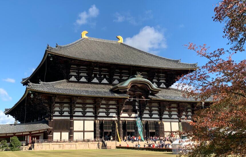Todai-ji, the Great Buddha hall, is one of the largest wooden structures in the world. Originally completed in 751, the structure was destroyed in 1181 and 1567.