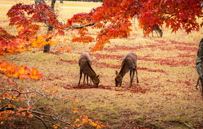 Located next to Todaiji and Kofukuji Temples, Nara Park is a spacious area filled with historic temples, ponds, and freely roaming deer, offering beautiful scenery in every season. It is one of the main attractions in Nara.