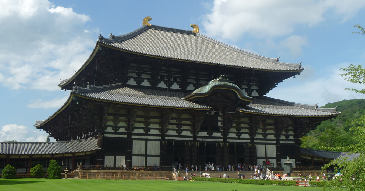Todai-ji, the Great Buddha hall, is one of the largest wooden structures in the world. Originally completed in 751, the structure was destroyed in 1181 and 1567.